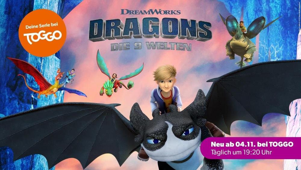 Eine neue Generation von Drachenzähmer:innen und ihren geflügelten Freunden steht in den Startlöchern, um Kinder in Staunen zu versetzen: Am 4. November 2022 startet die brandneue Animationsserie „DRAGONS – Die 9 Welten“ als deutsche Erstausstrahlung bei TOGGO auf SUPER RTL und ist täglich im Vorabend-Programm zu sehen. Mit der Serie wird die mysteriöse Welt der Drachen um spannende Abenteuer und neue Charaktere erweitert. Passend zum TV-Start erobern zahlreiche Produkthighlights die Regale der Spielzeugläden: Fans dürfen sich auf drachenstarke Neuheiten von Playmobil, Spin Master, Schmidt Spiele, Herding und vielen weiteren freuen. Mit „DreamWorks DRAGONS: Legenden der 9 Welten“ stellen Bandai Namco Europe und Outright Games außerdem ein eigenes Videogame zur Serie vor. Die TV-Serie und der Launch der neuen Produkte wird mit einem großen Gewinnspiel gefeiert: Wer ab dem 24. November ganz nach dem Motto „Watch & Win“ aufmerksam die Serie verfolgt und sich die richtige Reihenfolge der eingeblendeten Drachen merkt, kann mit etwas Glück eine Familienreise in den Heide Park Soltau oder eins von zehn Fanpaketen gewinnen!