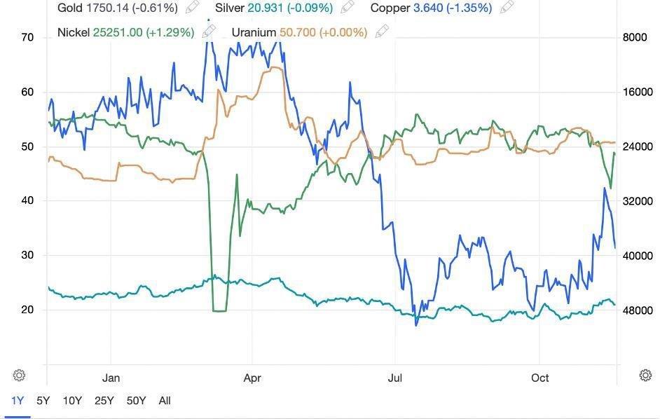 Besonders hervor stach, unter den Metallen, in der Vergangenen Woche Nickel, dessen Preis zur Wochenmitte fast in Richtung 30.000,- USD marschierte. Der Grund dafür war schnell gefunden, da in einer der größten Lagerstätten in Neukaledonien, die zu Trafigura gehört, die Produktion aufgrund starker Regenfälle und einem dadurch verursachten Leck in einem Absetzbecken die Produktion drosseln musste. Derzeit notiert der Preis an der LME pro Tonne Nickel um die 26.000,- USD. Eine kleine Pause gönnte sich auch der Kupferpreis, der um die 8.150,- USD pro Tonne notiert. Nach den hohen Gewinnen in den Vorwochen konsolidierten der Gold und Silberpreis auf hohen Niveaus im Bereich 1750,- USD bzw. rund 20,90 USD pro Unze!