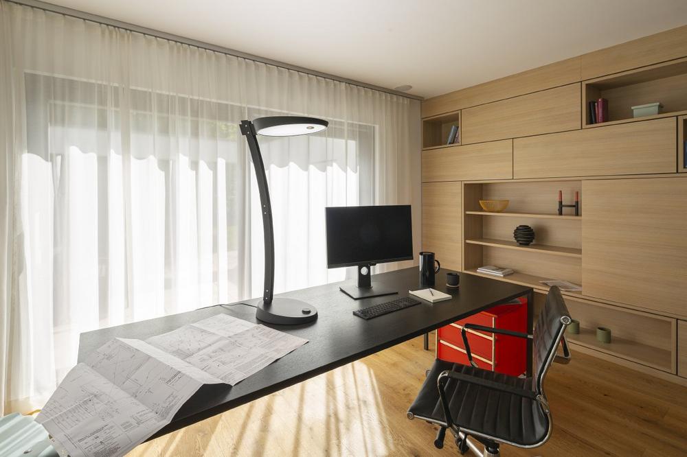 Um bei der Arbeit Farben richtig zu erkennen, braucht es Lichtquellen mit sehr guter Farbwiedergabe (mindestens Ra 80). Für die Arbeitsplätze älterer Mitarbeiter empfiehlt die Arbeitsstättennorm DIN EN 12464-1 höhere, modifizierte Werte. Sie lassen sich recht einfach mit zusätzlichen Schreibtisch-, Arbeitsplatz- oder Stehleuchten nachrüsten. Gutes Lichtdesign plant diese Anforderungen von Beginn an ein. Mit einer Lichtsteuerung wird die Planung energieeffizient umgesetzt. Ein Beispiel: Sind in einem Büro mit mehreren vernetzten Stehleuchten nicht alle Arbeitsplätze besetzt, dimmen sich die temporär nicht benötigten Leuchten auf ein weniger helles, indirektes Licht. So entstehen keine zu großen Helligkeitsunterschiede und Mitarbeitende können sich immer noch gut orientieren.