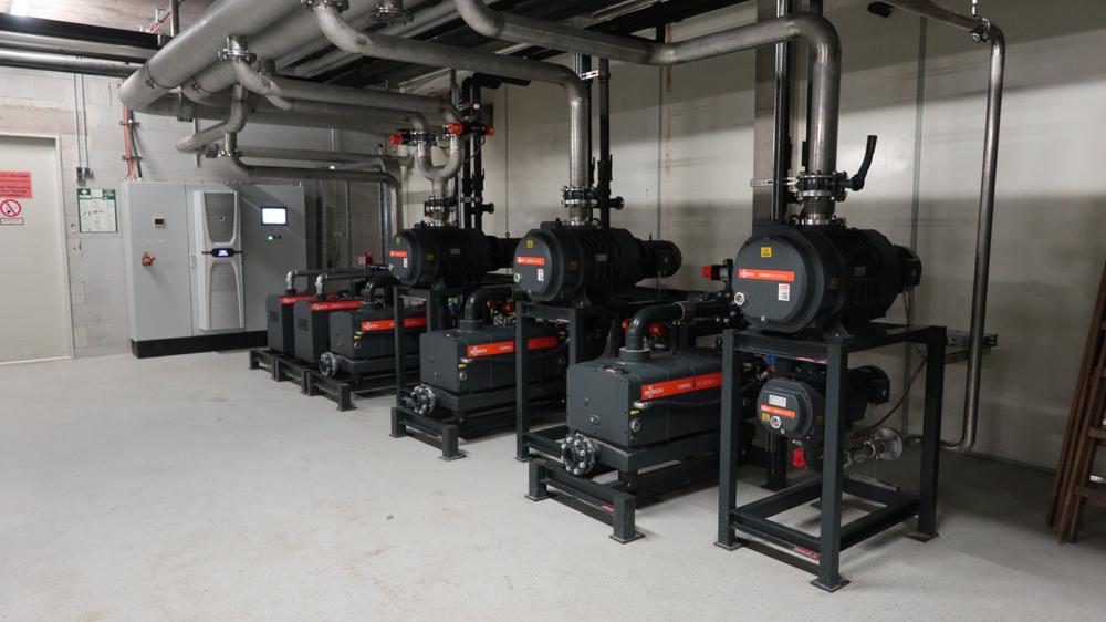 All vacuum pumps of the new, second vacuum supply are equipped with a variable speed drive (VSD). This enables the pumping speed of a vacuum pump to be adapted exactly to the actual requirements of the packaging process. With a variable speed drive, vacuum pumps can be automatically adjusted to match variations in vacuum demand precisely. By compensating for such fluctuations in demand, Schwarzwaldhof was able to benefit from high energy savings.