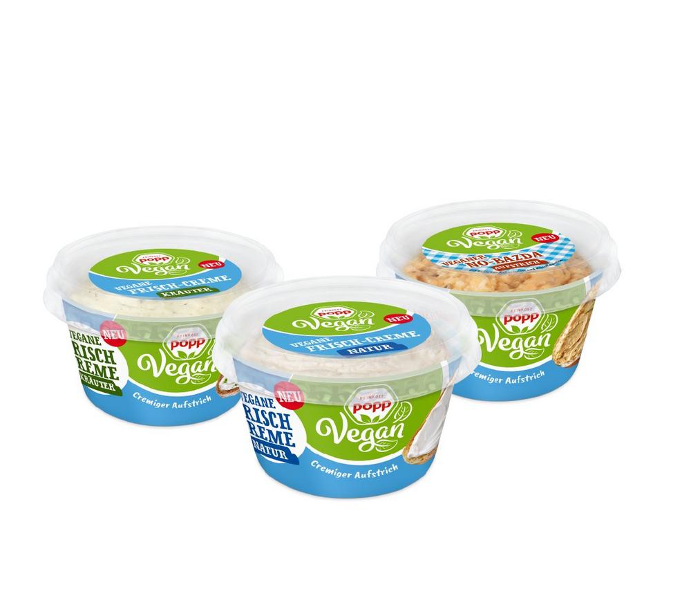 Der Markt veganer Lebensmittel boomt. Der Marktführer für Feinkostsalate, Popp Feinkost, hat sich deshalb nach dem großen Erfolg seiner veganen Feinkostsalate wieder etwas Neues, Leckeres einfallen lassen: vegane Frisch-Cremes in gleich drei Geschmacksrichtungen. Im Sortiment sind ab Ende Januar die vegane Frisch-Creme Natur und die vegane Frisch-Creme Kräuter. Dritter im Bunde ist der vegane NoBazda-Aufstrich – als erste bayerische Käsezubereitung ohne Käse eine echte Innovation im Handel.