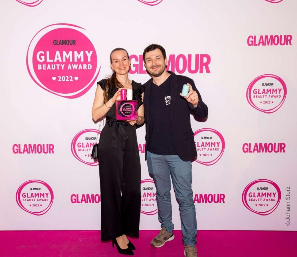 Hierbei wurde das HOLY PIT REFILL DEO als eine der besten und innovativsten Beauty-Neueinführungen des Jahres 2022 ausgezeichnet. Am 2. März fand nun das GLAMMY Winners Dinner mit bekannten Persönlichkeiten der Kosmetik-Szene in Düsseldorf statt. Hier wurde Asmir und Branka der pinke GLAMMY Beauty Award überreicht.