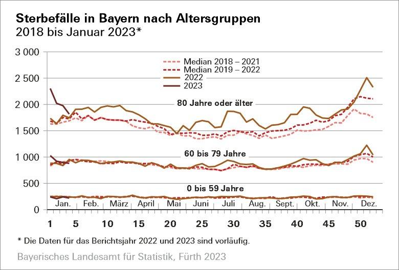 Erhöhte Sterbefallzahlen in Bayern im Januar 2023