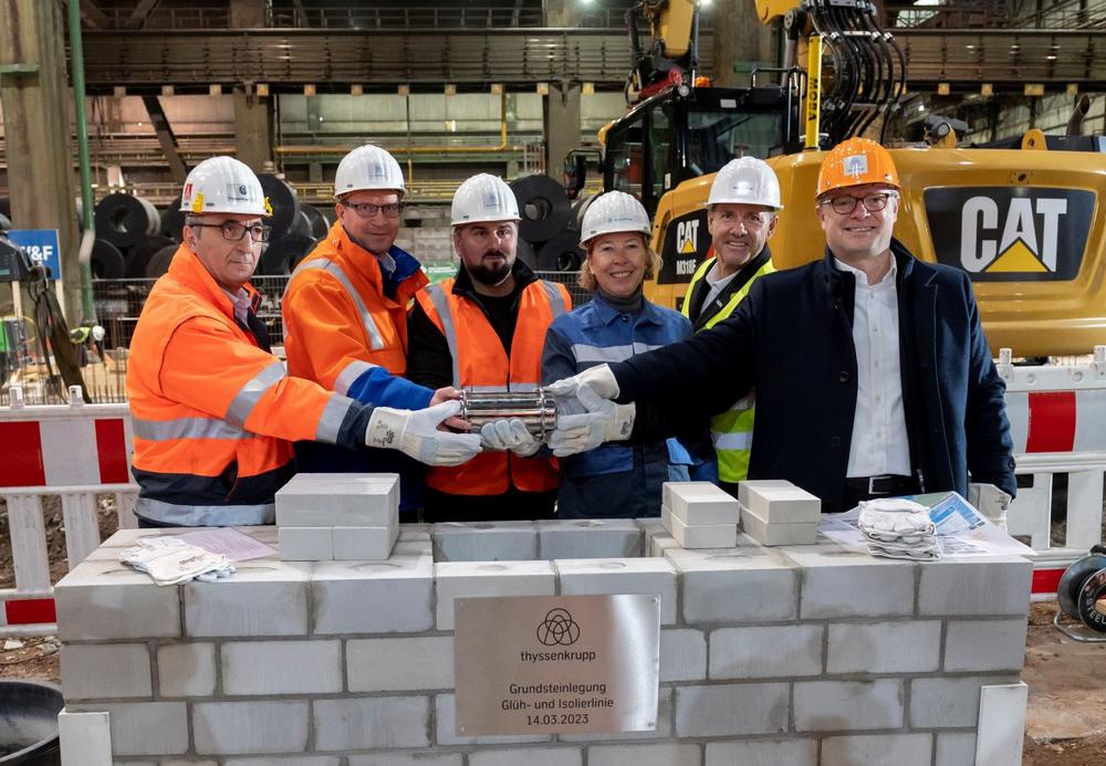 thyssenkrupp Steel is systematically continuing to implement its Strategy 20-30: the ceremony to mark the laying of the foundation stone for the new annealing and isolating line was held today at the Bochum site. The modern and energy-efficient unit will be capable of producing even thinner electrical steel strips with particularly homogeneous mechanical and magnetic properties. The electrical steel is designed to meet the requirements of highly efficient motors used primarily in electric vehicles. With this goal in mind, the plant will produce up to 218,000 metric tons of non-grain-oriented electrical steel per year in the future. The investment amounts to about 150 million euros. The project partner is the plant builder SMS group from Düsseldorf. The unit is scheduled for completion by 2024.
