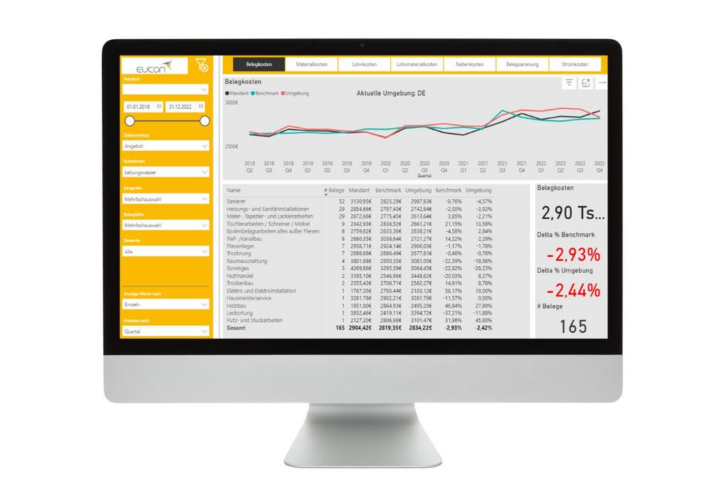 Mit Claims Data Intelligence stellt Eucon Versicherern ergänzende Markteinsichten zur Verfügung, mit deren Hilfe sie einen vollständigen Überblick über Preis- und Kostenentwicklungen im Schadenbereich erhalten. Dies befähigt ihre Experten, einfachere und bessere Entscheidungen auf Grundlage einer ständig aktualisierten Datenbasis zu treffen und wertvolle Potenziale zeitnah zu erkennen und zu nutzen.