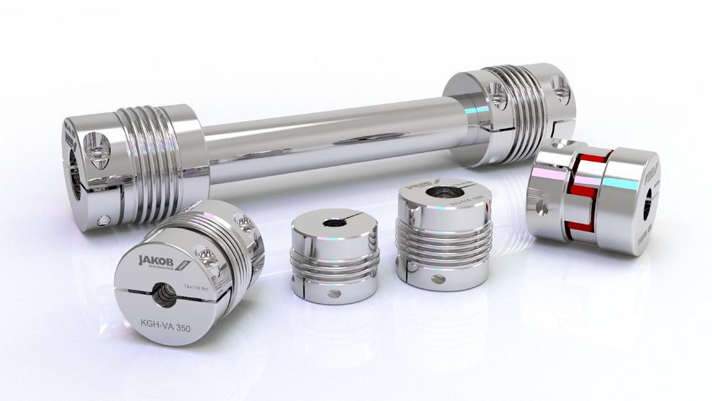 The KGH-VA series is wear and maintenance-free, can be used up to 350 °C, includes shaft diameters of 7 – 85 mm, torque ranges from 10 to 1200 Nm and is available in variable lengths with 2 or 4 corrugated bellows.