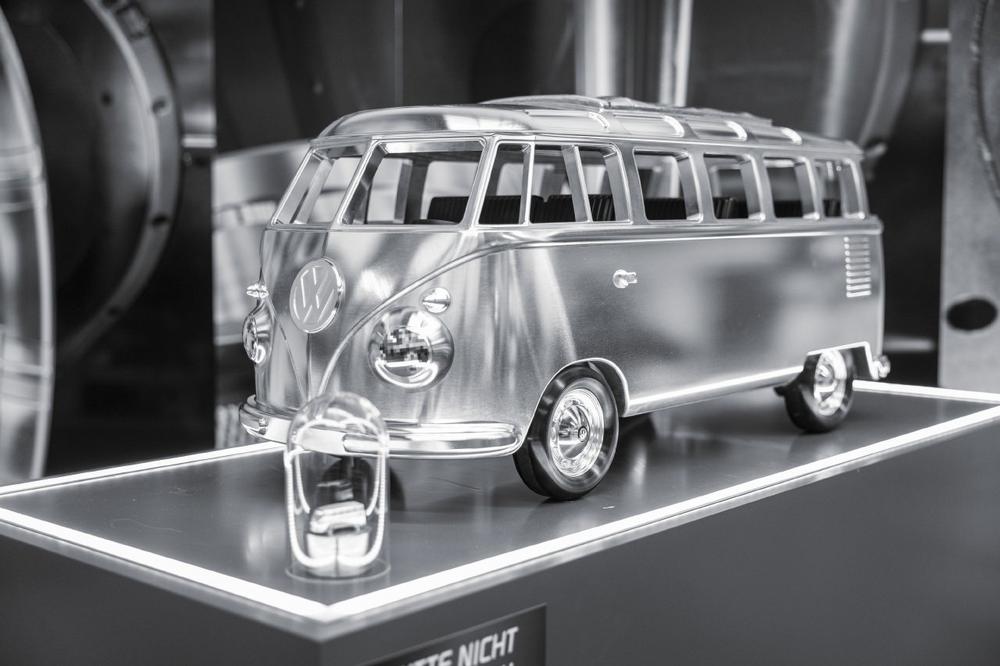 Der Star der Ausstellung war sicherlich der gefräste Bulli, welcher im Maßstab 1 : 5 und einer immensen Detailverliebtheit die Sympathie der Besucher auf seiner Seite hatte. Aber auch andere Bauteile wie der 94 kg schwere Plattenspieler, das Thermomix Gesenk, der Rodelschlitten oder auch die zahlreichen Aerospace und Werkzeug- und Formenbau-Bauteile, alle gespickt mit innovativen und äußerst interessanten Technologielösungen wurden bestaunt.