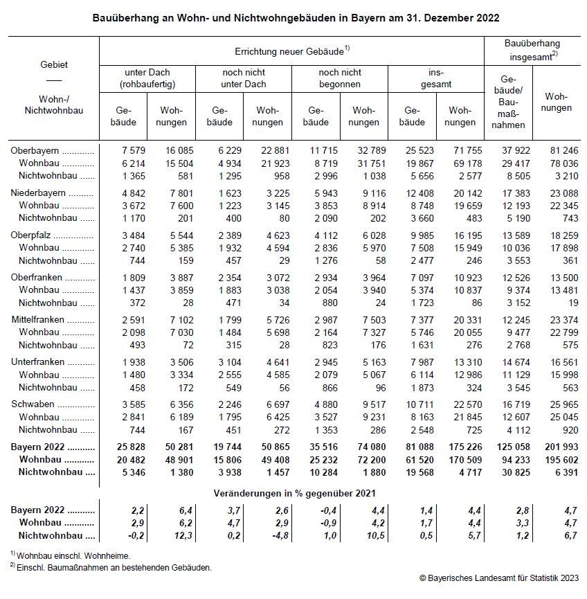 Bauüberhang in Bayern am 31. Dezember 2022 erneut über Vorjahresniveau