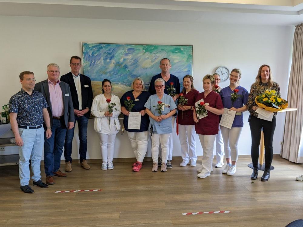 Klinikdirektor Bernd Hamann und Pflegedienstleiterin Sandra Schoolmann wollen den Internationalen Tag der Pflegenden auch nutzen, wiederholt für Pflegeberufe zu werben. Dies sei angesichts des akuten Pflegenotstands dringend nötig. Dabei weisen beide auf einen Missstand hin: Rehakliniken sind derzeit nicht als Ausbildungsträger für Pflegeberufe zugelassen. Für Hamann völlig unverständlich: „Da Pflege auch zukünftig eine große Bedeutung haben wird, ist es erforderlich, dass wir unseren eigenen Nachwuchs ausbilden.“ Seit 2021 kämpfe er für ein Modellprojekt zur Ausbildung von Pflegekräften in der Rehabilitation. Das notwendige Konzept habe die Klinik bereits erarbeitet. „Wir haben viele Politiker eingebunden in der Hoffnung, dass wir ab Oktober 2023 ausbilden können. Es ist unverständlich, dass bei dem akuten Pflegenotstand keine schnelleren Lösungen gefunden werden können. Wir sind jedenfalls startbereit“, versichert Hamann.