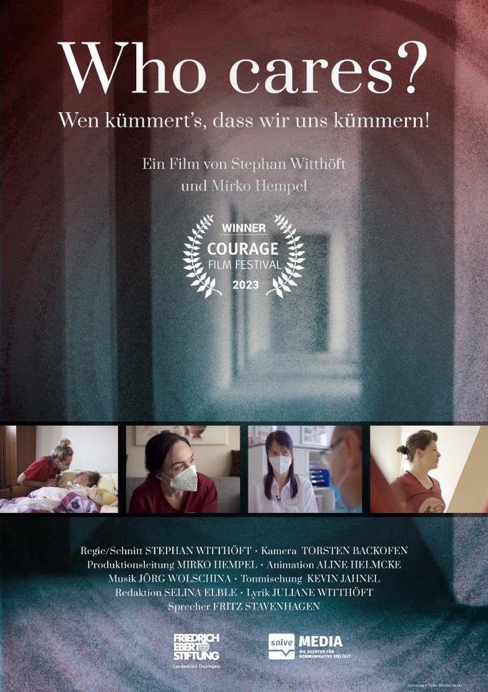 „Who cares?“ porträtiert vier Ärztinnen, Hebammen und Pflegerinnen in ihrem täglichen Bemühen, Menschen von ihrer Geburt bis zum Tod zu begleiten. So, dass dabei Menschlichkeit, Nähe und Wärme trotz härtester finanzieller Vorgaben und Taktungen, die das Gesundheits- und Pflegesystem in Deutschland einfordert, nicht gänzlich untergehen. Dabei wird dem Betrachtenden einiges zugemutet – wenn ein Mensch auf die Welt kommt und wenn ein Mensch gehen muss. Und alle machen diese Erfahrungen im Laufe ihres Lebens, am eigenen Leib oder bei Lieben und Angehörigen. Die Ambivalenz der Perspektiven, die „Kümmerer“ können morgen schon selbst darauf angewiesen sein, dass sich jemand um sie kümmert, zeigt: Krankheit und Tod, Pflege und Gebrechlichkeit, der Verlust von Selbständigkeit und die Abhängigkeit von helfenden Strukturen gehören untrennbar zum Leben. Der Film versucht mit seiner lyrisch-musischen und künstlerischen Führung, unaufdringlichen und behutsamen Beobachtungsgabe fragile Nähe zu schaffen.