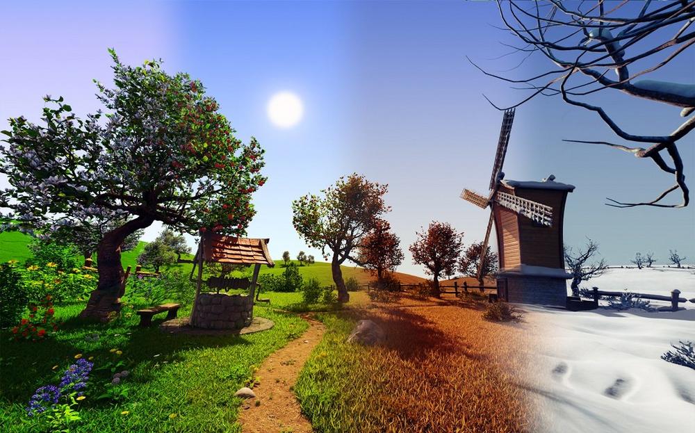 „Das Geheimnis der Jahreszeiten“ erzählt verständlich und bildreich den Wechsel von Tag und Nacht und zeigt auf, wie die Lage der Rotationsachse der Erde und deren Umlauf um die Sonne die Jahreszeiten bestimmt. In der Geschichte entdeckt das Mädchen Mia im Haus ihres Großvaters ein mysteriöses Stück Weltraumtechnik. Von ihrem exzentrischen Onkel Edmund überredet nutzt Mia die geheimen Kräfte der Apparatur, um die Jahreszeiten zu verändern. Schnell wird ihr klar, dass ihr Handeln fatale Konsequenzen haben könnte, doch Onkel Edmund will seinen Plan nicht aufgeben.