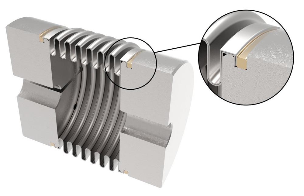 The JAKOB-developed and long-time patented joining process (crimping-in-press process), on the other hand, is optimally suited for connecting multi-layer stainless steel bellows without clearance to aluminum hubs. Here the operation is certainly possible even in temperature ranges from -50 ° C to + 350 ° C.