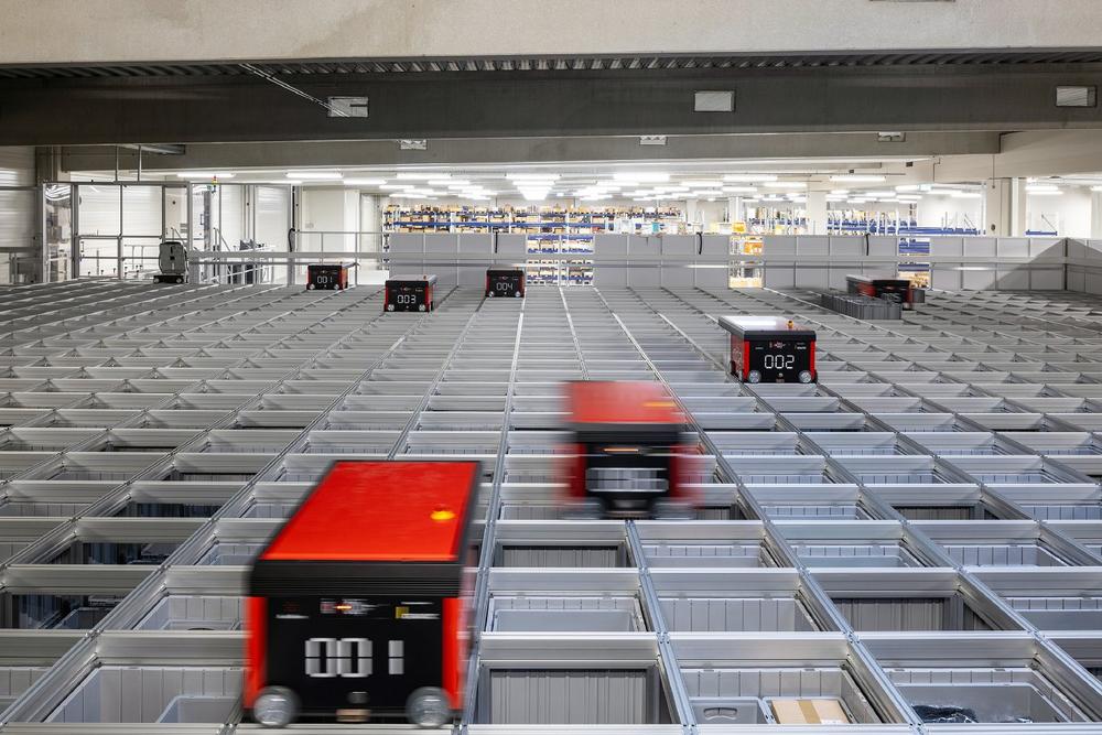 Das neuinstallierte System in Lindenstruth hat eine Lagerkapazität von circa 13.400 Behältern. Diese sind zudem in weitere Fächer unterteilt, sodass sie unterschiedliche Artikel aufnehmen können. Auf der Oberfläche fahren neun mobile Roboter, die automatisch auf die Behälter zugreifen, sobald die darin enthaltene Ware angefordert wird. Anschließend befördern sie die Artikel selbsttätig zu den Ports der Kommissionierstationen. Über einen Rollenförderer werden die kommissionierten Artikel dem innerbetrieblichen Transport zur Verfügung gestellt und anschließend an die jeweiligen Produktionsbereiche transportiert. Auf diese Weise werden unnötige Laufwege und Nebenaktivitäten der Mitarbeitenden vermieden. Darüber hinaus fällt das Nachfüllen von Ware weg, woraus sich ein zusätzlicher Zeitgewinn ergibt.