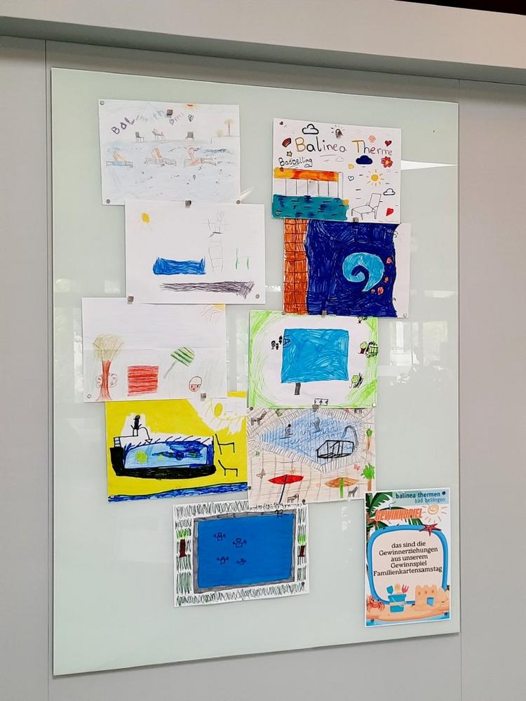 Zum Start dieses neuen Angebots haben die Balinea Thermen ein Gewinnspiel mit Kinderzeichnungen unter dem Motto: Was bedeutet es für dich als Kind, in den Balinea Thermen Spaß zu haben? Die Gewinner-Zeichnungen werden im Foyer der Balinea Thermen ausgestellt und die Kinder haben einen Gutschein für 1 Familiensamstagkarte für zwei Erwachsene und zwei Kinder als Preis erhalten.