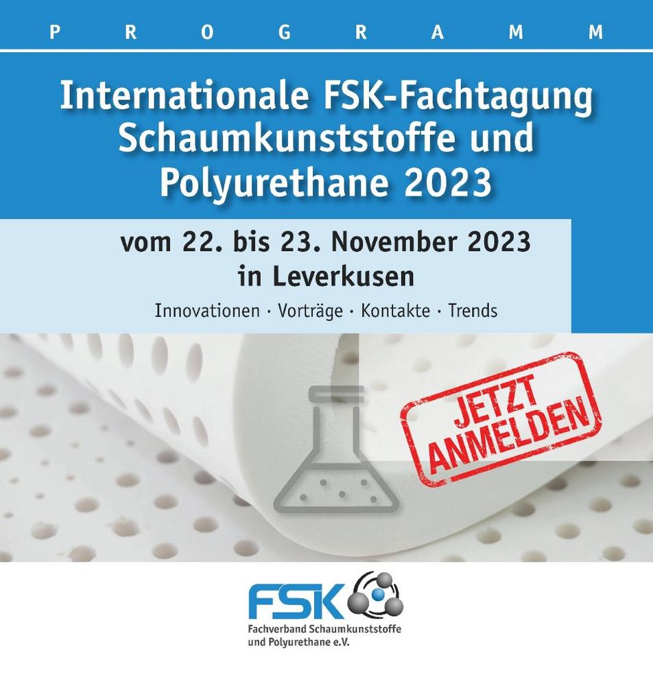 Jetzt anmelden zur Internationalen FSK-Fachtagung Schaumkunststoffe und Polyurethane am 22. und 23. November 2023 in Leverkusen sowie das aktuelle Programm zur Internationalen FSK-Fachtagung abrufen.