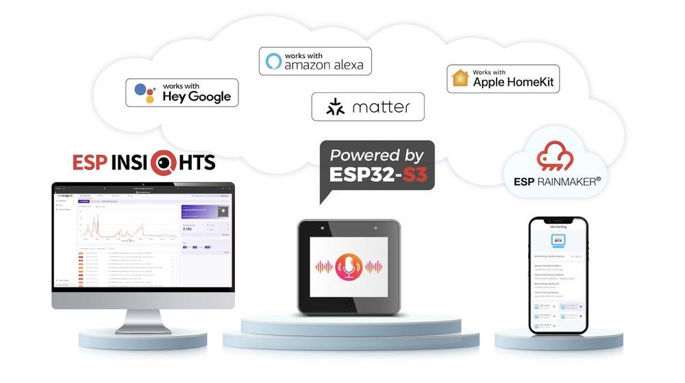 Espressif’s AIoT Cloud platform, ESP RainMaker®, can be used with the ESP32-S3-BOX-3 to configure GPIOs and offline voice commands, while also offering remote control via phone Apps and/or third-party voice assistants.