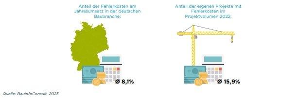 Im Rahmen der BauInfoConsult-Studie „Jahresanalyse: Marketing und Trends“ wurden 600 Architekturbüros, Bauunternehmen, Dach-, Maler-, Trockenbau- und SHK-Handwerksbetriebe in telefonischen Interviews von den Düsseldorfer Marktforschungsspezialisten um ihre professionelle Meinung gebeten, wie viel Prozent des Jahresumsatzes in der deutschen Baubranche im Jahr 2022 von Fehlerkosten aufgefressen worden sein dürfte.