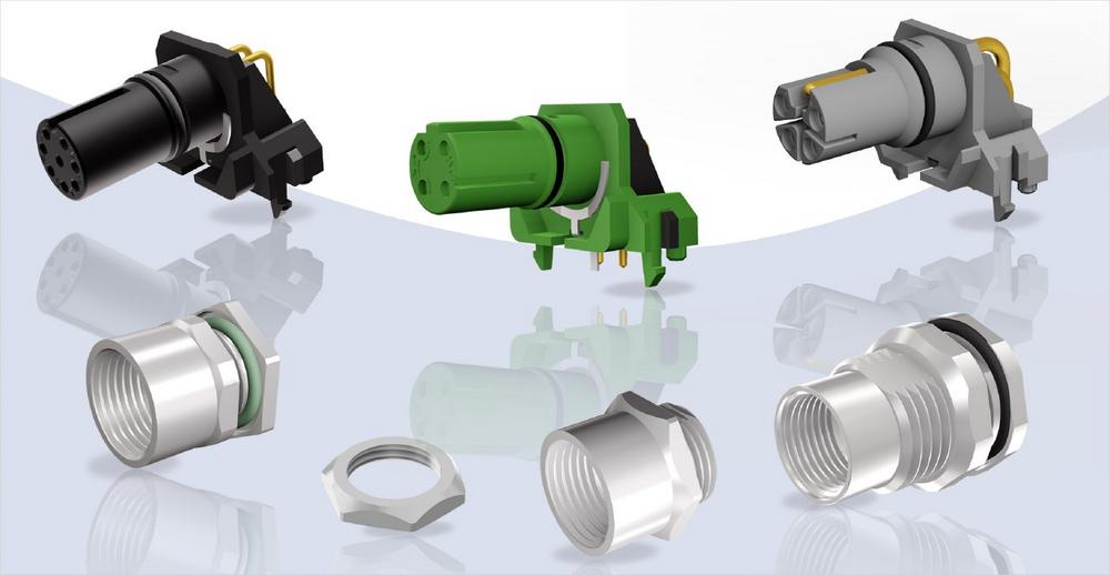Durch den O-Ring sind die Flanschsteckverbinder auch im ungesteckten Zustand abgedichtet gegen Feuchtigkeit von außen. Die zweiteiligen Leiterplattenflansche stehen mit A-Codierung in den Polzahlen 4-, 5, 8- und 12-pol. sowie D-codiert 4-pol. für die Front- und Hinterwandmontage zur Verfügung. Die L-codierte Variante ist für die Hinterwandmontage in den Polzahlen 4 und 4+FE erhältlich.