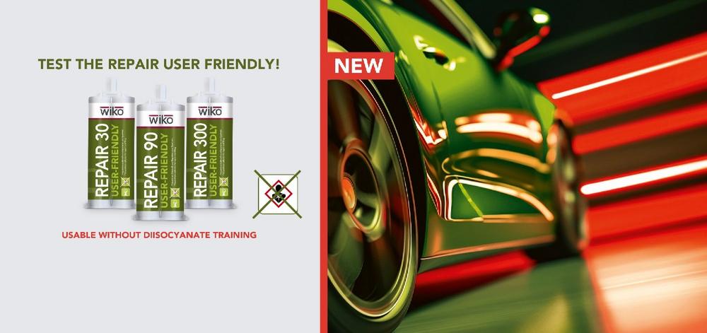 Najnowsza generacja klejów WIKO® REPAIR – dostępnych w wersjach o 30-sekundowym, 90-sekundowym i 300-sekundowym czasie pracy – została specjalnie zaprojektowana do szerokiego zakresu zastosowań w budowie pojazdów i naprawach elementów karoserii, takich jak spojlery, progi i zderzaki. Czarny kolor zapewnia wizualnie wyrafinowane rezultaty klejenia elementów zewnętrznych i wewnętrznych. Nowa, przyjazna dla użytkownika formuła zapewnia, że materiał można łatwo modelować w trakcie eksploatacji.