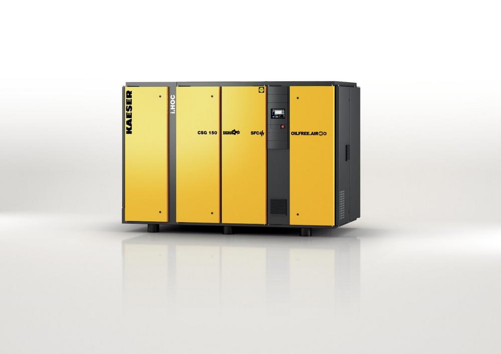 Die ölfrei verdichtende CSG-Baureihe hat einen besonders geringen Energie- und Platzbedarf, der in mehreren ausgeklügelten technischen Lösungen begründet liegt. Der Schraubenkompressor punktet mit den bestmöglichen Energieeffizienzklassen durch den Antrieb mit einem modernsten Synchron-Reluktanz-Motor und einer optimalen Anordnung der Komponenten, die zu besonders niedrigen Druckverlusten an der Anlage führt. Das senkt die Energiekosten und verkleinert unter anderem den CO2-Fußabdruck.