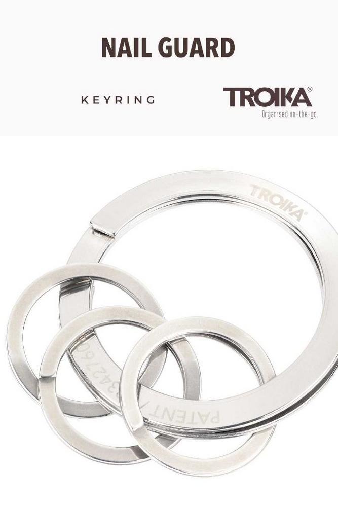 Mit einem Druck öffnet sich der patentierte Verschluss, und dein Schlüssel sitzt am Ring. Schnell, mühelos und ganz ohne Risiko für die Fingernägel. Das funktioniert beim großen Ring genauso wie bei den drei kleineren. Öffnen, Schlüssel anbringen, schließen, fertig. TROIKA NAIL GUARD mit dem patentierten Verschluss: So geht Schlüsselring. Edelstahl mit matt silberfarbener Oberfläche.