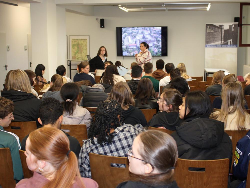 Die erste Station auf der „Reise der Erinnerung“ war Halle. In der Gedenkstätte ROTER OCHSE Halle (Saale) haben sich die Jugendlichen anhand von biografischen Fallbeispielen mit der Verfolgung von Deutschen und Franzosen durch die NS-Justiz beschäftigt. Teil des Besuchs war auch eine Gedenkveranstaltung auf dem Gertraudenfriedhof, wo sich Hunderte Urnengräber von im „Roten Ochsen“ Hingerichteten und von in Halle verstorbenen Zwangsarbeitern befinden. Zu den weiteren Stationen gehören die Gedenkstätte für Zwangsarbeit in Leipzig, die Gedenkstätte Feldscheune Isenschnibbe Gardelegen, die KZ-Gedenkstätte Mittelbau-Dora, die Gedenkstätte für die Opfer der NS-„Euthanasie“ Bernburg, das „Haus der Wannsee-Konferenz“ in Berlin und die Gedenkstätte Moritzplatz Magdeburg.