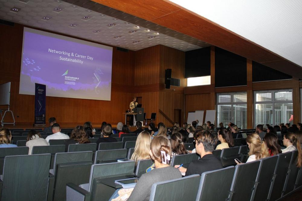 Die Hochschule für Wirtschaft und Gesellschaft Ludwigshafen (HWG LU) veranstaltete am 10. Oktober 2023 erstmalig einen Networking & Career Day, der ganz im Zeichen der Nachhaltigkeit stand. Mit Vorträgen, Networking-Gelegenheiten und einem nachhaltigen Bio-Regionalbuffet bot das innovative Karriere-Event eine Plattform für den Austausch zwischen Studierenden/Berufseinsteigern und ausgewählten Unternehmen unter dem Fokus der Nachhaltigkeit. Die Veranstaltung, organisiert vom International Office der Hochschule, fand im Rahmen des EU-finanzierten Nachhaltigkeitsprojekts „Sustainable Horizons“ statt. Dieses Projekt vereint sechs europäische Hochschulen, die Projekte zur Steigerung der Nachhaltigkeit in den Bereichen Bildung, Gesellschaft und Forschung umsetzen.