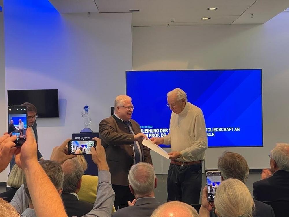 Der Deutsche Amateur-Radio-Club e.V. (DARC) hat ein neues Ehrenmitglied: Am 19. Oktober 2023 wurde die Auszeichnung an Prof. Dr. Ulrich L. Rohde feierlich verliehen. Bei der Feierstunde in den Räumen der Firma Rohde & Schwarz GmbH & Co. KG, München, würdigte der DARC-Vorsitzende Christian Entsfellner vor zahlreichen Gästen das unerschütterliche, außergewöhnliche und großzügige Engagement von Prof. Rohde.