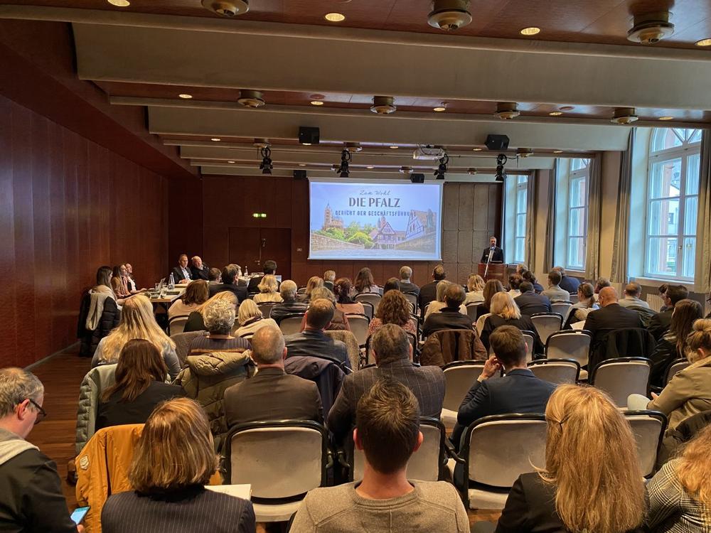 Im Rahmen der Mitgliederversammlung gab Pfalz Touristik Geschäftsführer Tobias Kauf außerdem einen umfassenden Rückblick auf das Tourismusjahr 2023 und die Maßnahmen der Pfalz Touristik. Die Gäste und Übernachtungszahlen für 2023 werden aller Voraussicht nach nur knapp unter dem Rekordjahr 2019 liegen, wobei einzelne tourismusstarke Orte bereits jetzt über den 2019er Zahlen liegen. Allem Zahlen-Optimismus zum Trotz steht die Branche weiterhin vor enormen Herausforderungen. Vor allem die Betriebe sind durch Fachkräftemangel und Inflation an der absoluten Belastungsgrenze und müssen mit der Erhöhung der Mehrwertsteuer nun einen weiteren Tiefschlag verkraften.