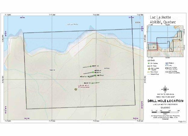 Das Konzessionsgebiet Lac La Motte liegt in der ertragreichen Bergbaugegend von Abitibi in Quebec, 40 Kilometer nordwestlich der Stadt Val-d‘Or. Etwa 5 km bis 20 km von dem Konzessionsgebiet entfernt befinden sich mehrere aktive Lithiumprospektionsgebiete/-minen in verschiedenen Phasen der Exploration und Erschließung.