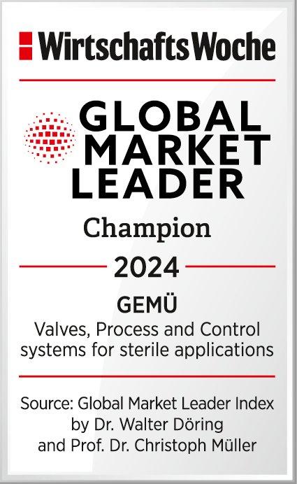 WirtschaftsWoche has awarded the owner-managed valve specialist GEMÜ the WirtschaftsWoche quality seal "Global Market Leader – Champion 2024" for what is now the eighth time in a row. In doing so, WirtschaftsWoche has recognized GEMÜ’s renewed inclusion in the global market leader index in the segment "Valves and automation components: Valves, process and control systems for sterile applications".