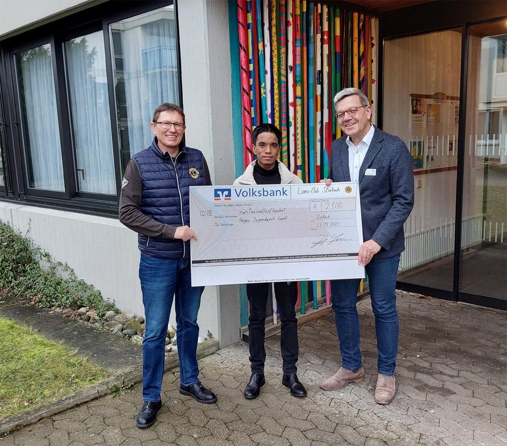 So gab es für das Hegau-Jugendwerk bereits 2 Tage vor Weihnachten ein ganz besonderes Geschenk, als Jörg Lawrenz, Präsident des Lions Club Stockach gemeinsam mit seinem Sohn zu Besuch kam, um Dr. med. Axel Galler, Ärztlicher Direktor und Chefarzt Neuropädiatrie des Hegau-Jugendwerks persönlich einen Spendenscheck von über 2.500 EUR zu überreichen.