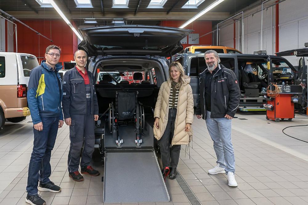 Vor der Übergabe bekamen die Verantwortlichen erst einmal eine entsprechende Einweisung, wie der Rollstuhl richtig im Peugeot Rifter befestigt werden muss: „Kofferraumklappe öffnen, Hebel für die Rampe nach unten drücken und herunterklappen, Fahrzeug vorbereiten (z.B. die Gurte aus der Halterung entfernen und den Schalter für die elektrischen Gurte aktivieren), Gurte am Rollstuhl befestigen und den Rollstuhl ins Fahrzeug schieben, hintere Gurte befestigen und überprüfen, Gurtsystem vorschriftsmäßig anlegen und das Fahrzeug verschließen. „Immer prüfen. Ob die Klappe korrekt eingerastet ist“, sagt Produktionsleiter Rainer Brunner. Ein Video beschreibt die Arbeitsabläufe im Einzelnen. Es ist wichtig, dass sich die Kunden im Vorfeld mit der Materie befassen. „Und wenn es Fragen gibt, können sich die Kunden auch gern bei uns melden“, sagt der Heidelberger Mobilitätsberater Reinhard Runge.