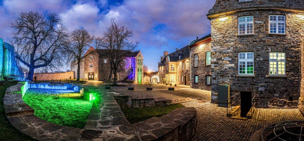 Zu Beginn dieser Tour am Sonntag, 4. und 11. Februar sorgt direkt um 18 Uhr der beleuch-tete Schlosshof für eine besondere Atmosphäre. Die weiteren 90 Minuten führen durch den Rittersaal, das Wappenzimmer und das Kaminzimmer, über die historische Anlage mit den Turmfragmenten und auf den Wehrgang. Hier erfolgt ein erneuter Blick auf die beleuchtete Anlage, allerdings aus einer anderen Perspektive.