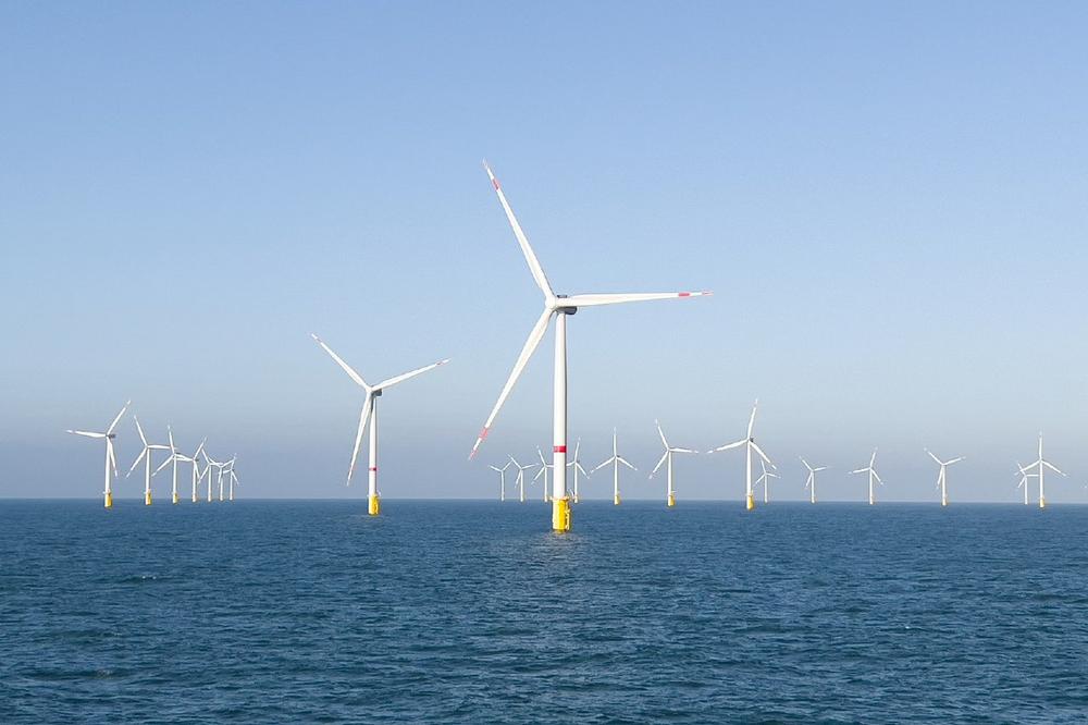 • Energie wird im RWE Offshore-Windpark Kaskasi in der Nordsee erzeugt