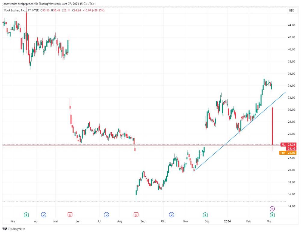 Schaut man sich den Chart der Aktie an, erkennt man ein Unterstützungsniveau und eine Aufwärts-Trendlinie. Die Trendlinie wurde durch den Crash der Aktie durchbrochen, das Unterstützungsniveau hingegen hielt bis jetzt. Allerdings testet der Kurs dieses Niveau immer noch. Sollte der Kurs abprallen und etwas steigen könnte man dies als perfekten Einstiegspunkt sehen. Die Aktie befindet sich aktuell auf einem guten Preis und das Allzeithoch lag auch schon bei 79,43 USD, somit ist da noch viel Platz nach oben. Die Aktie befindet sich aktuell bei 24,24 USD und ist vorbörslich leicht gesunken um -1,53% (23,87 USD). Man sollte vielleicht noch auf ein Signal in den nächsten Tagen warten und dann nach Bedarf einsteigen. Es können allerdings jeder Zeit fundamentale Aspekte eine Rolle spielen und den Kurs beeinflussen.