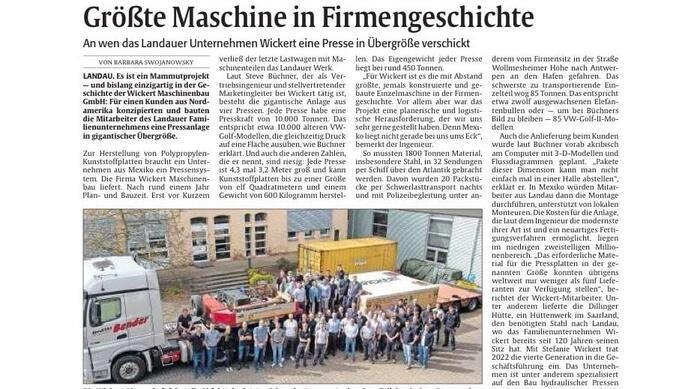 An wen das Landauer Unternehmen Wickert eine Presse in Übergröße verschickt