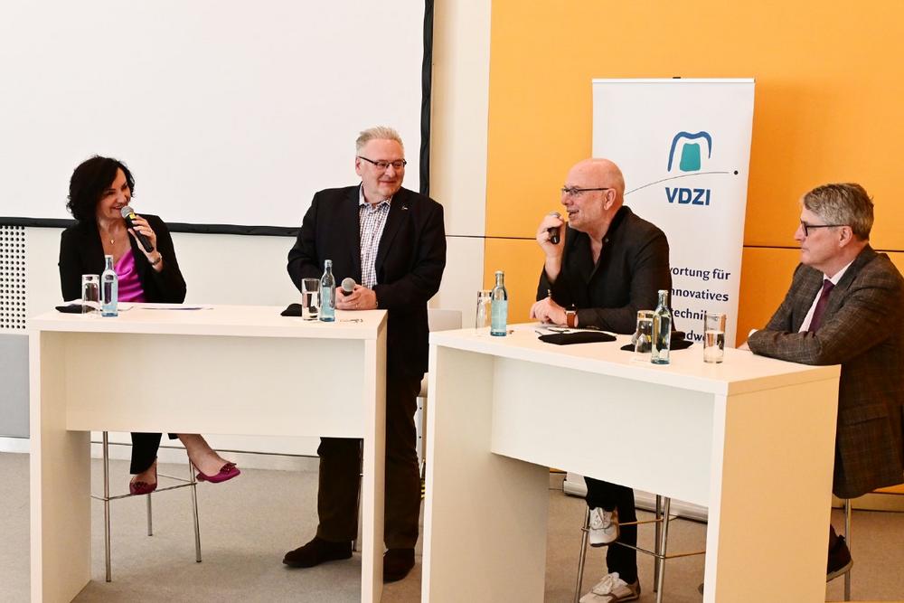 In der Podiumsdiskussion unterstrich VDZI-Präsident Kruchen:„Mit der 2022 in Kraft getretenen Zahntechnikerausbildungsverordnung sowie der aktuell in der Novellierung begriffenen Zahntechnikermeisterverordnung ist unser schöner Berufsstand absolut zukunftsfähig! Wir passen unsere Ausbildungen und Prüfungen an neue technologische Möglichkeiten an und machen unser Gewerk damit attraktiv für junge Leute.