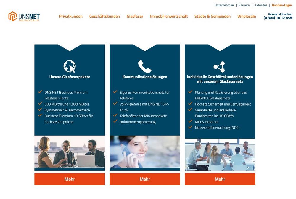 Menschen mit Lichtgeschwindigkeit zu begeistern, dafür steht die DNS:NET Gruppe. Die DNS:NET Internet Service ist Spezialist für den Breitbandausbau und Erschließung bislang unterversorgter Regionen mit Glasfaser. Das Brandenburger/Berliner Telekommunikationsunternehmen wurde 1998 gegründet und gehört zu den Full-Service Netzbetreibern in Deutschland. Das Dienstleistungsportfolio bildet das gesamte Spektrum von Rechenzentrumsdienstleistungen und IP-basierten Services für Geschäftskunden, Full-Service-Lösungen für die Immobilienwirtschaft sowie Highspeed Internet (Telefonie, Internet- und TV-Anschlüsse) für Privatkunden ab. DNS:NET betreibt eigene Glasfaserringe und -netze und investiert seit 2007 gezielt und in hohem Maße eigenwirtschaftlich in den Infrastrukturausbau in unterversorgten Regionen, zahlreichen Städten und im ländlichen Raum. Infos zum Unternehmen unter www.dns-net.de