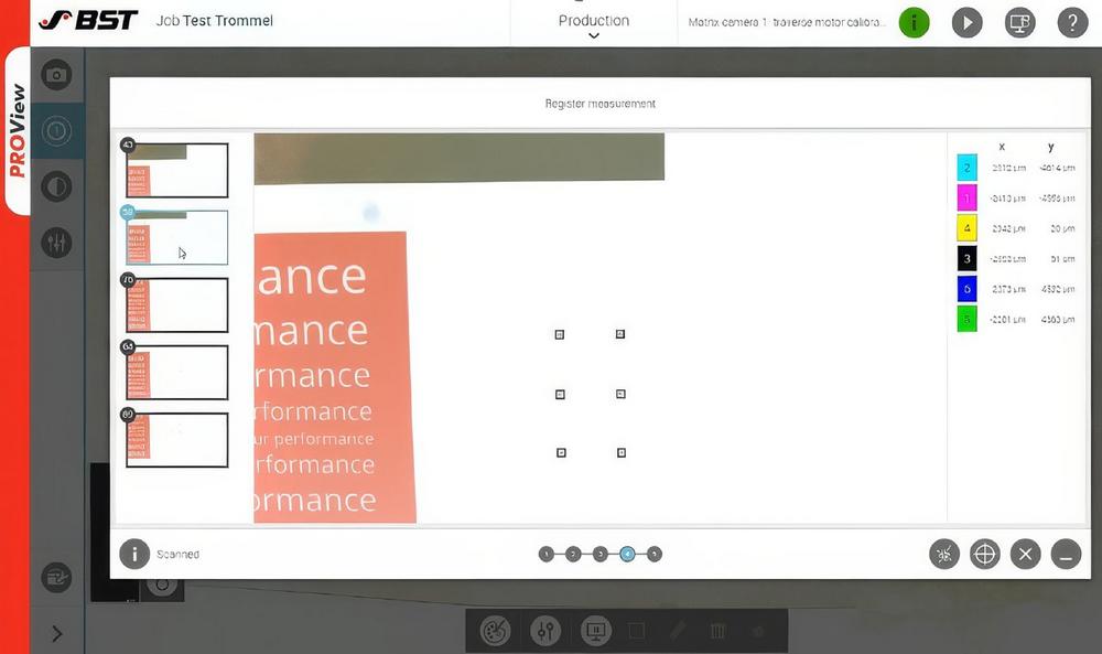 Precise register setting is crucial to achieve a perfect print image without typical register errors such as blurring or color shifts. Normally, this step is carried out manually at the beginning of the printing process for each printing unit and each ink. The new SMARTRegister Pro add-on module from BST relieves manufacturers of the need for manual presetting: The camera-based solution works on the basis of microdots, small colored dots in the corresponding printing unit color. The microdots are automatically captured at the start of production and placed on top of each other. This state-of-the-art technology saves both working time and material. The software function available for the iPQ-View and PROView video web inspection systems enables manufacturers to achieve far more sustainable, resource-saving and process-optimized production.