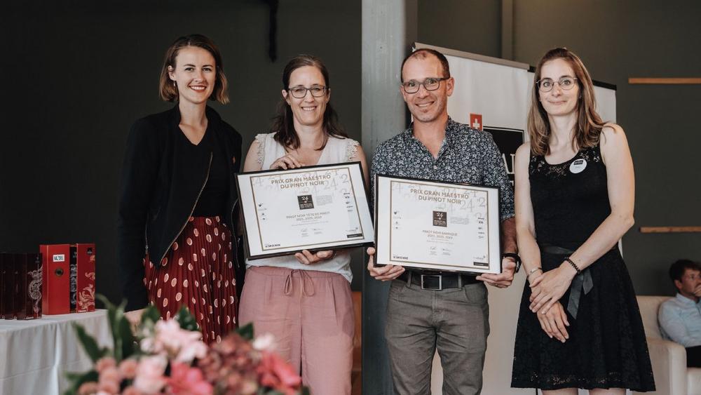 Der Gran Maestro-Preis für Pinot Noir wurde von Marine Bréhonnet, Kommunikationsverantwortliche bei der Swiss Wine Promotion AG, überreicht. Er zeichnet den Produzenten aus, der mit drei aufeinanderfolgenden Jahrgängen das beste Gesamtergebnis erzielt hat. Dieses Jahr geht der erste Preis zum zweiten Mal in Folge in den Kanton Zürich, an Nadine Saxer in Neftenbach für die Jahrgänge 2021, 2020 und 2019 ihres Tête de Pinot. Diese Kellerei hatte beim letztjährigen Gran Maestro-Preis den zweiten Platz belegt.