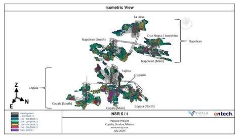 The PEA considers two contiguous underground mines, the Copala Mine and the Napoleon Mine, with on-site treatment of the mined material processed through a 3-stage crushing-grinding circuit, along with a leach and Merrill Crowe circuit to produce silver-gold doré bars. The mines will be contractor-operated utilizing ramp-access and a combination of long-hole stoping and drift-and-fill mining methods.