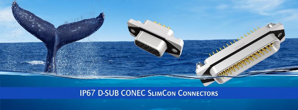 The housing cut-out for the CONEC SlimCon series corresponds to that of other IP20 D-SUB connectors, so no new cut-outs are required and it is possible to convert from standard IP20 systems to the IP67 system of the CONEC SlimCon series. The one-piece zinc die-cast housing makes the new CONEC SlimCon D-SUB connectors – similar to the CONEC Solid Body series – an extremely mechanically robust interface with reliable IP67 protection. Due to its design, however, a reduction in the occupied surface area of 48% to 52% is achieved compared to a standard IP67-protected D-SUB connector.