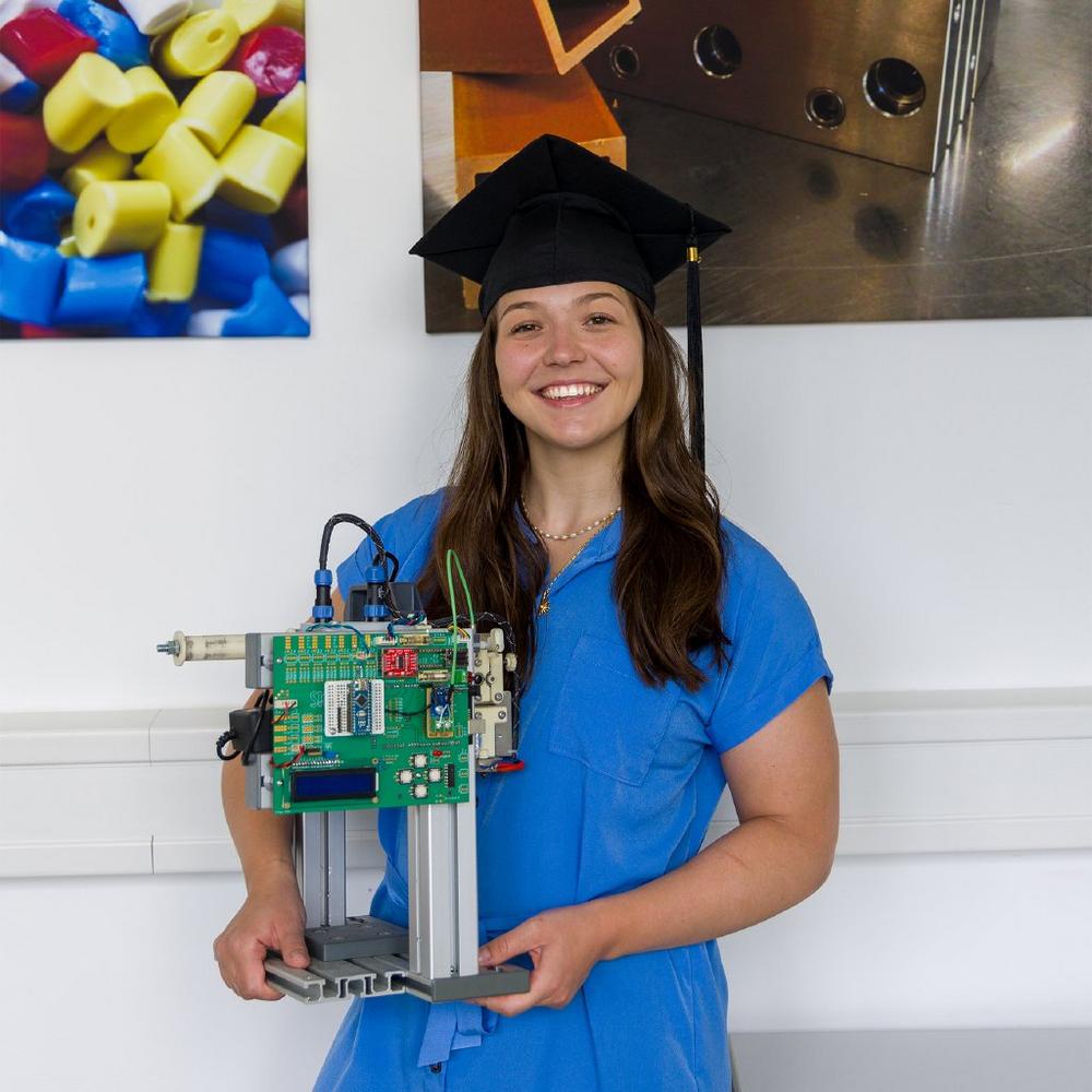 Rebecca Wolffs Forschung liefert detaillierte Einblicke in die Zwei-Phasenströmung innerhalb des FFF-Hotends. Ihre Arbeit führte zur Entwicklung numerischer Modelle, die eine simulative Prozessvorhersage ermöglichen. Diese Modelle erlauben eine fundierte Analyse und Optimierung des Aufschmelz- und Fließverhaltens in der Druckerdüse und erlauben so z.B. eine Abschätzung der Druckbarkeit neuer Materialien oder der maximalen Druckgeschwindigkeit. „Rebecca Wolffs Arbeit stellt einen wichtigen Schritt zur Weiterentwicklung des FFF-Verfahrens dar. Ich bin überzeugt, dass ihre Forschung auch in der Industrie bedeutende Anwendungen finden wird und freue mich, ihre weitere Entwicklung am SKZ zu begleiten“, erklärt
