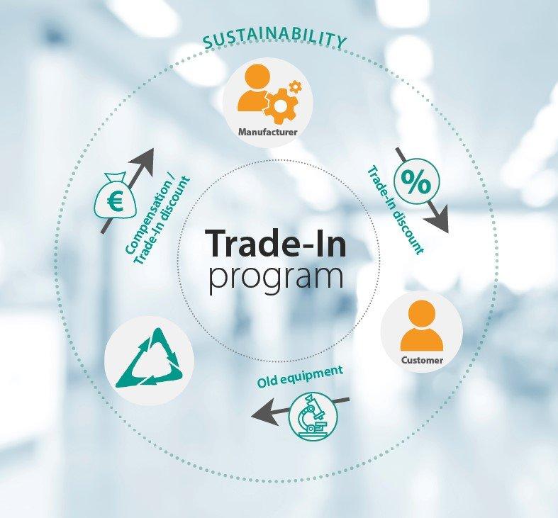 Das Angebot von Labexchange funktioniert ganz einfach und richtet sich sowohl an Hersteller als auch an Händler für Laborgeräte. Um den Verkauf von Laborgeräten zu fördern, können Hersteller und Händler ihren Kunden beim Erwerb neuer Laborgeräte einen Rabatt anbieten. Dieser Nachlass wird faktisch von Labexchange bezahlt und basiert auf der Übernahme und Weitervermittlung von ausgedienten oder gebrauchten Laborgeräten des Kunden.