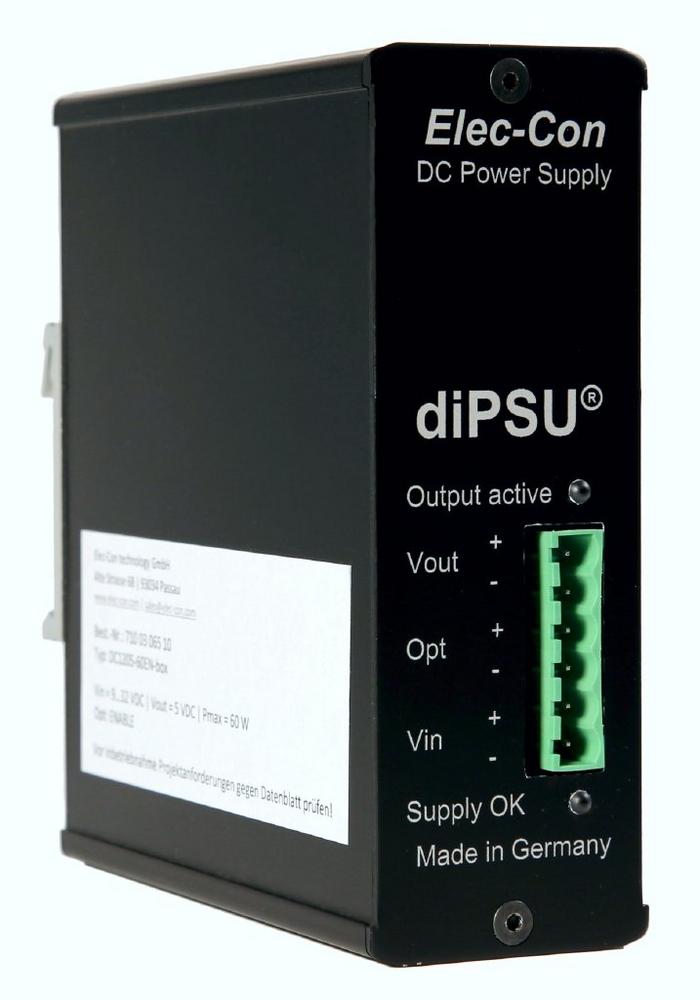 Elec-Con, Passauer Entwicklungshaus für Leistungselektronik bis 1 kVA, stellt mit diPSU eine Baureihe kundenspezifisch anpassbarer DC/DC-Wandler für den Schaltschrankeinbau vor. Die kompakten Geräte erzeugen jede Spannung von 1,7 V bis 75 V DC aus der 24-V-Versorgung der Automatisierung und bieten Ausgangsleistungen bis 500 W. Gefertigt werden die dezentralen Lastwandler ausschließlich in Deutschland.
