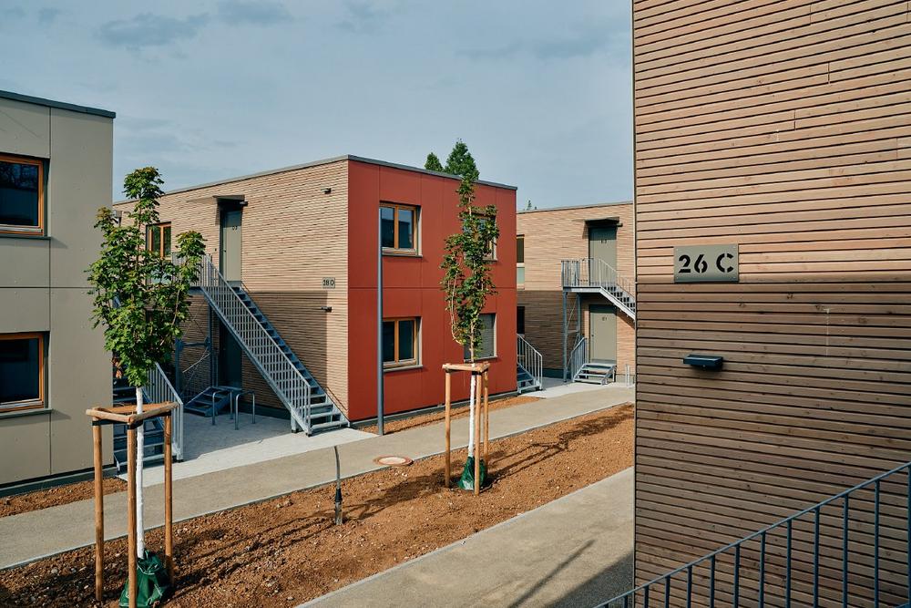 Im Auftrag der Landeshauptstadt Stuttgart entstanden 2024 an zwei Standorten insgesamt 18 zweigeschossige Wohnhäuser, die speziell für die Unterbringung von Geflüchteten konzipiert wurden. Die Gesamtfläche dieser Gebäude beträgt 3.882 m² und bietet den Bewohnern moderne, abgeschlossene Wohneinheiten mit privatem Rückzugsraum. Gleichzeitig wurden großzügige Außenanlagen geplant, die Raum für gemeinsame Aktivitäten und Begegnungen schaffen.