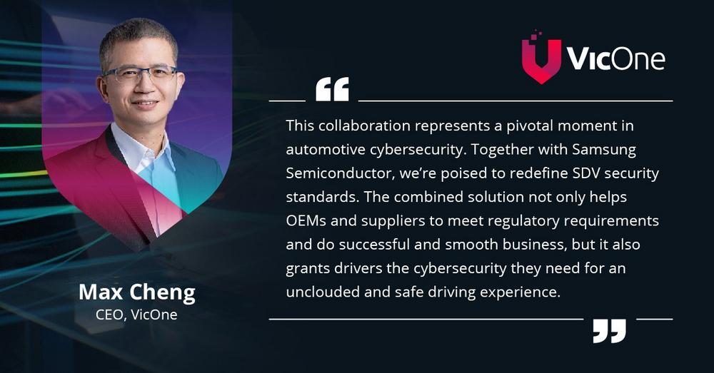 „Diese Zusammenarbeit ist entscheidend für die Cybersicherheit in der Automobilindustrie. Gemeinsam mit Samsung Semiconductor sind wir in der Lage, die SDV-Sicherheitsstandards neu zu definieren. Die kombinierte Lösung hilft nicht nur den OEMs und Zulieferern, die gesetzlichen Anforderungen zu erfüllen und erfolgreiche sowie reibungslose Geschäftsabläufe zu gewährleisten, sondern sie bietet auch den Fahrern die Cybersicherheit, die sie für ein ungetrübtes und sicheres Fahrerlebnis benötigen. Wir möchten die Zusammenarbeit, die wir mit Samsung Semiconductors begonnen haben, zum Nutzen unserer Kunden und Partner fortsetzen und ausbauen. Wir planen zum Beispiel, gemeinsam mit Lösungspartnern zu demonstrieren, wie SDV-Container und Hypervisoren geschützt werden können“, so Max Cheng, CEO von VicOne.