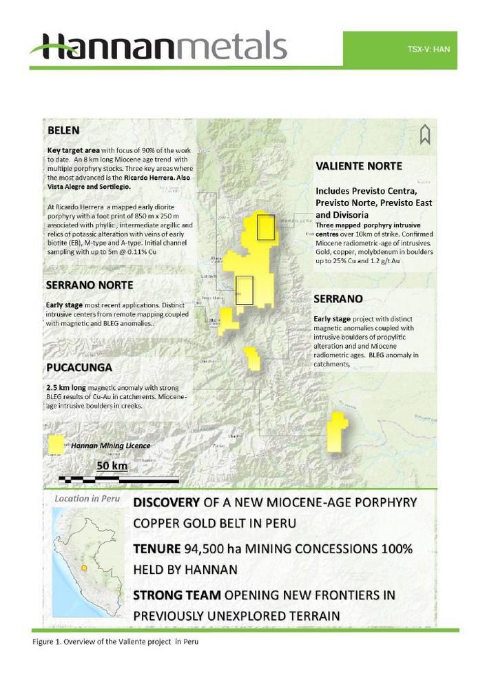 Auf dem Valiente Projekt zielt Hannan auf Porphyr-Kupfer-Gold-Vorkommen aus dem Miozän in einem Back-Arc-Gebiet im zentralen Osten Perus ab. Hannan betrachtet den Gürtel als eine potenzielle neue metallogene Provinz in Peru. Das Projekt liegt weit außerhalb der konventionellen Porphyrgebiete und weist regionale Ähnlichkeiten mit Lagerstätten wie dem großen Kupfer-Gold-Porphyr Bajo de Alumbrera in Argentinien auf.