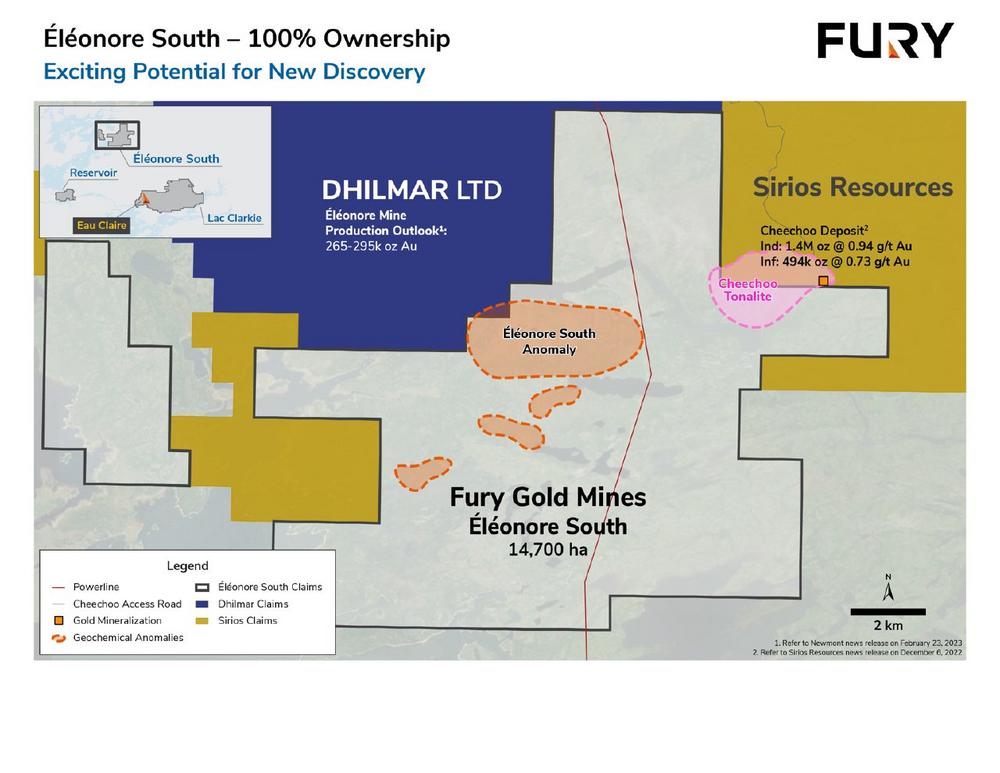 “The level of excitement among the technical team is palpable as we commence the first-ever drill program targeting Éléonore style mineralization within the Éléonore South project area. The six targets identified are large scale so we will be looking to be as efficient as possible staying on top of the drill bit and constantly updating and tweaking the targeting matrix. We benefit from direct experience at Éléonore on our team and feel confident in the targeting completed to date,” commented Bryan Atkinson, P.Geol., SVP Exploration of Fury.